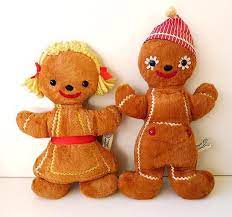 VTG 1990 Target Store Christmas Gingerbread Man Boy Girl Stuffed Plush Doll Set.